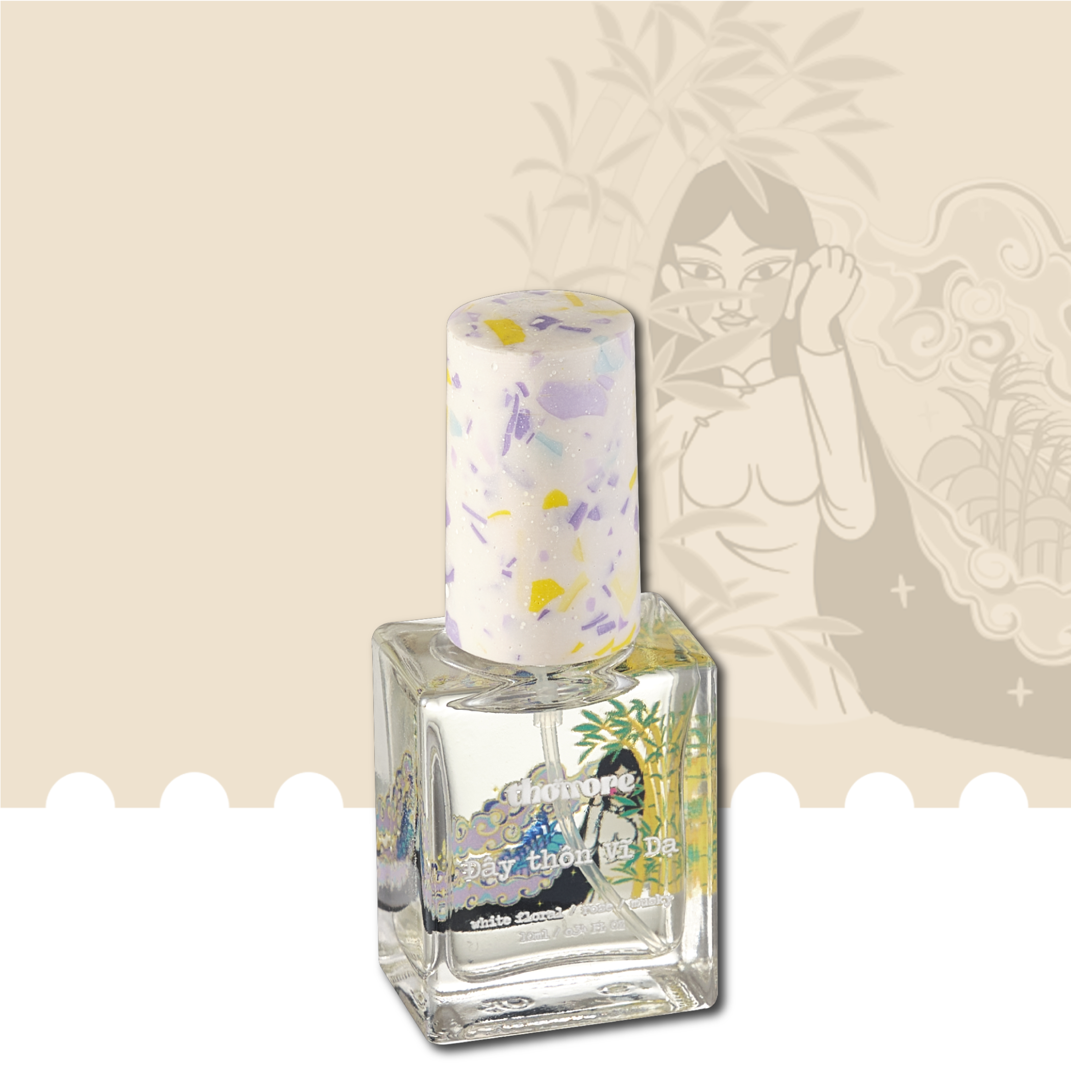 Lấy cảm hứng từ bài thơ bất hủ của Hàn Mặc Tử, mùi hương này mở ra với sự trong trẻo của hoa nhài Sambac và hoa hồng tháng Năm – như làn sương tinh khôi ngủ ngoan trên lá, như nắng sớm len lỏi qua hàng cau. Tầng hương đầu được ôm ấp nhẹ nhàng trong vòng tay của lá nguyệt quế cay dịu, tạo nên cảm giác thanh khiết đầy hoài niệm.